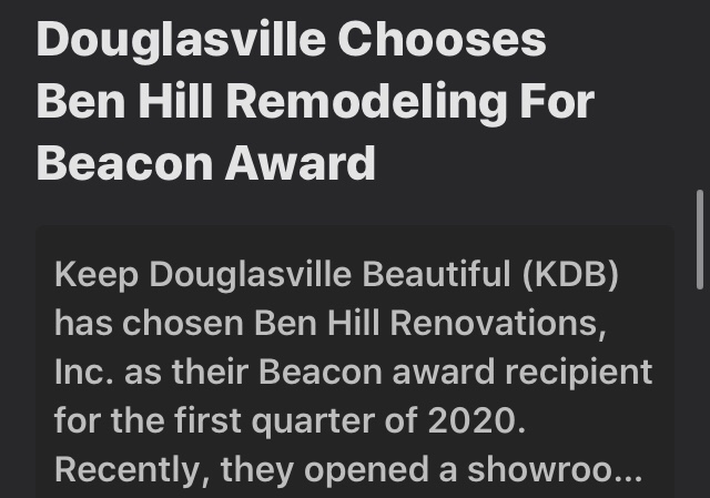 Douglasville Chooses Ben Hill Remodeling For Beacon Award