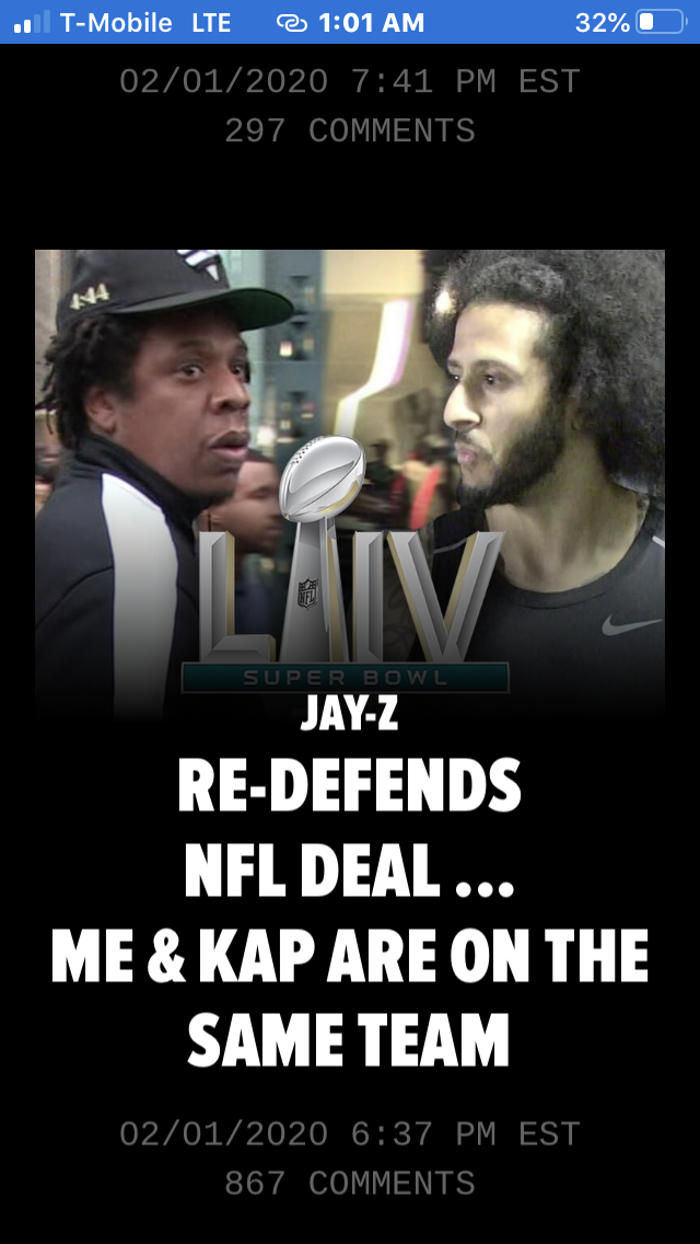 Jay Z Defends NFL www.tmz.com/2020/02/01/jay-z-defends-nfl-partnership-super-bowl-police-brutality-colin-kaepernick