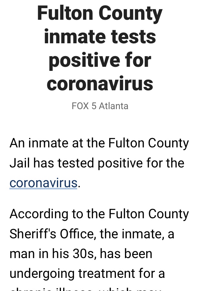 Fulton County Inmate Tested Positive For 🦠
